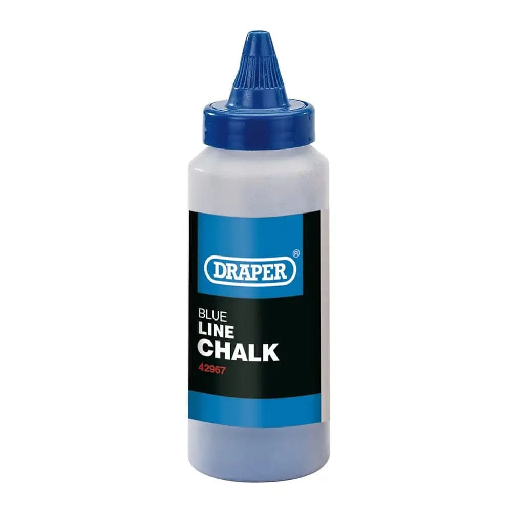 Draper Line Chalk – Bliue, 115g (4oz) is a marking powder designed for use with chalk line reels, ideal for creating straight, visible guidelines on construction sites.