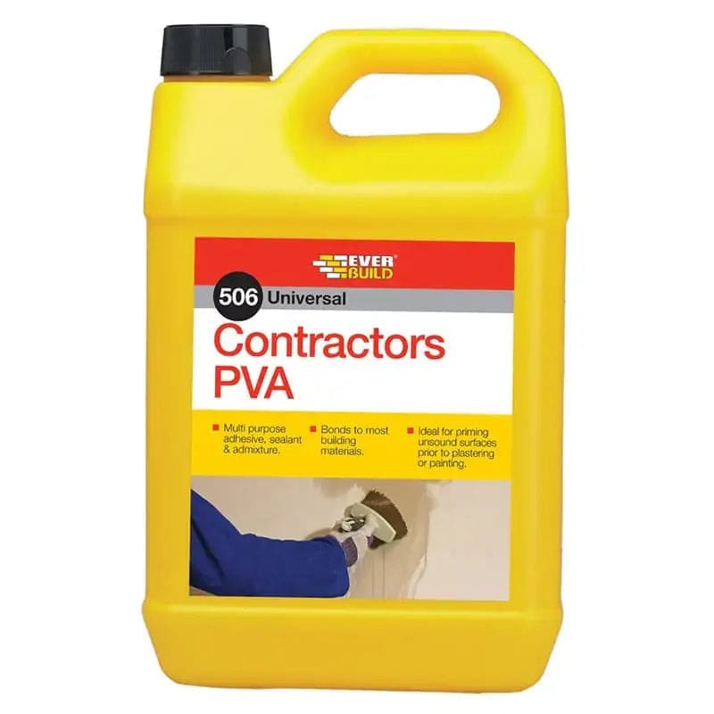 Everbuild 506 Contract PVA – 5 Litre is a multi-purpose bonding agent, primer, and sealer widely used in construction and DIY. It’s a cost-effective, general-purpose PVA ideal for site work.